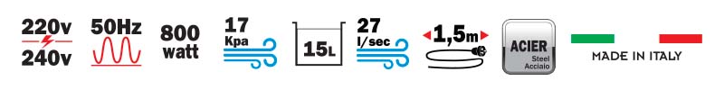 Elektrinis pelenų siurblys Cenetì 15 L / 800 W (Ribimex, Italija)